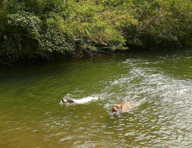 近くの川へ水泳教室に出かけました