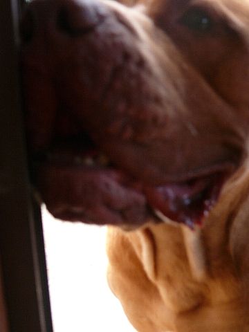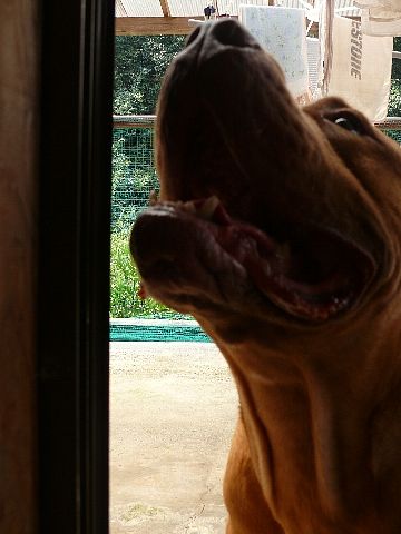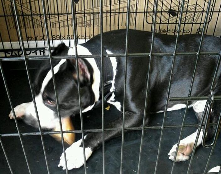 オリコウサンのご褒美、豚耳をほうばる元気君!