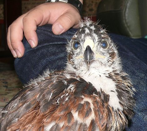 生後3週間目のハリスホークの雛です。