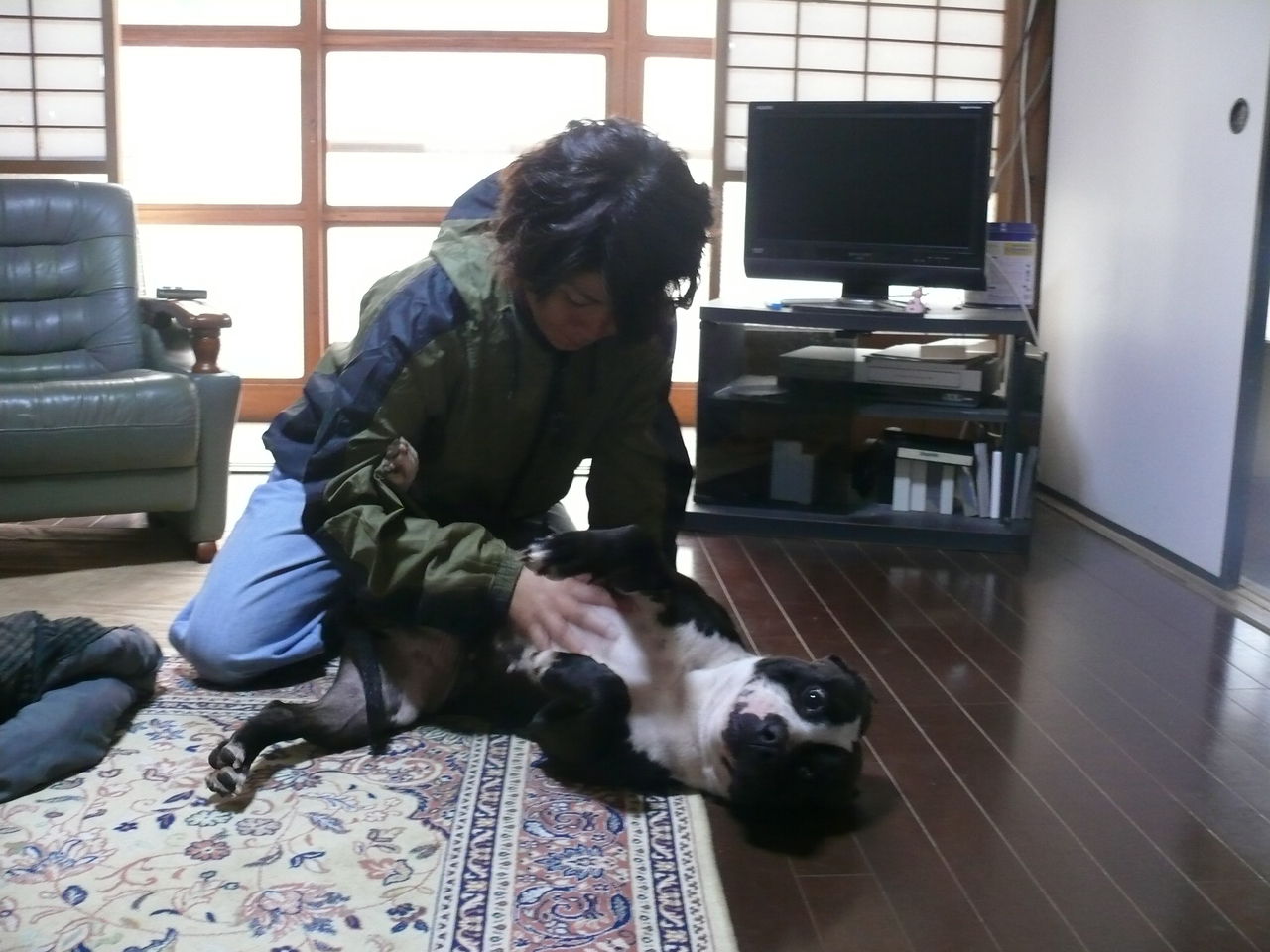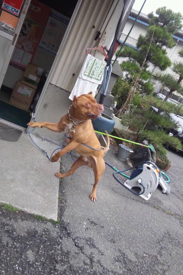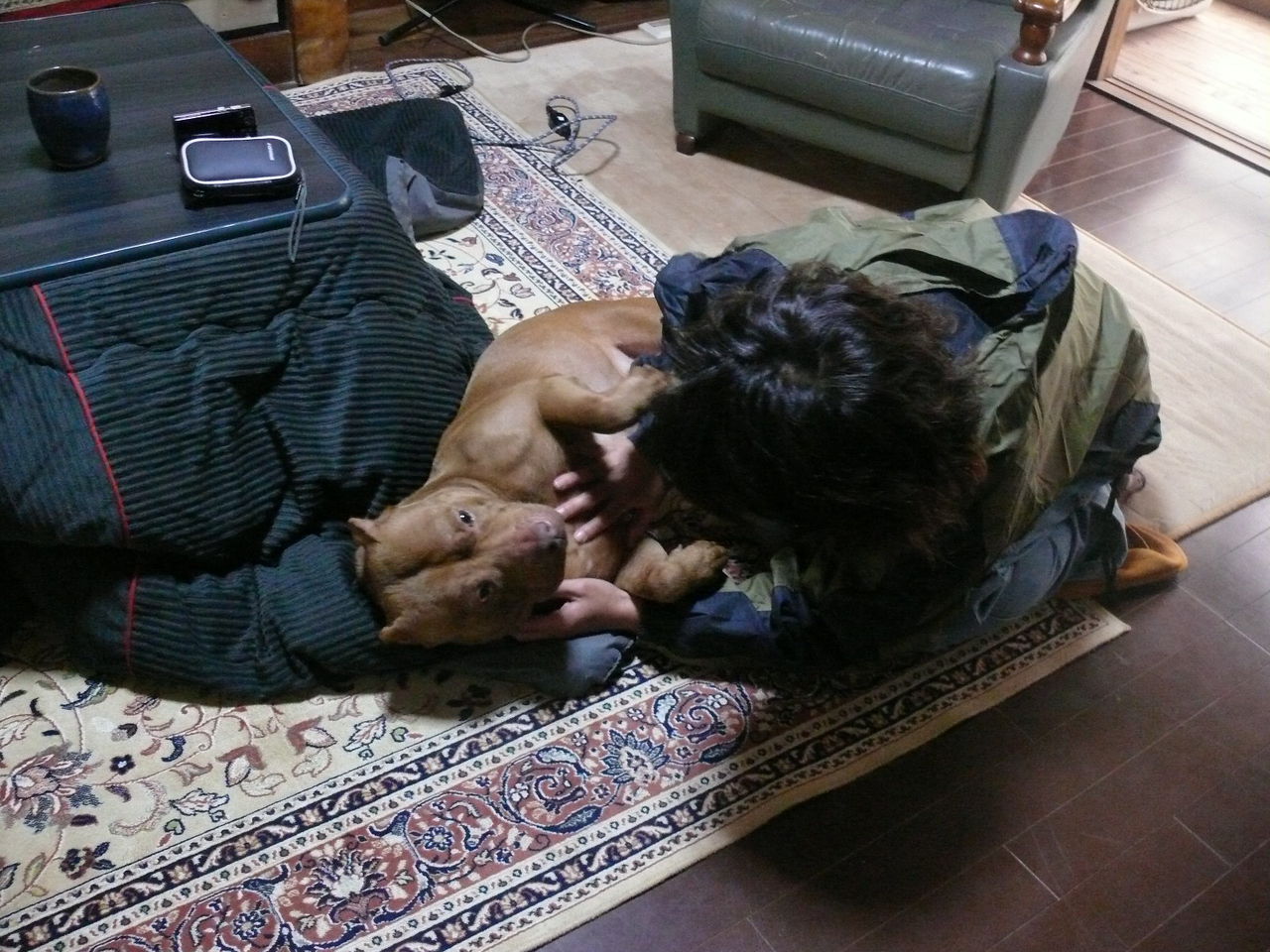 離れたがりませんでしたので、おやつでつって犬舎へ。