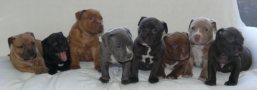 左から4番目がライノ君、一番右が仔犬たちの父親ビンセント君
