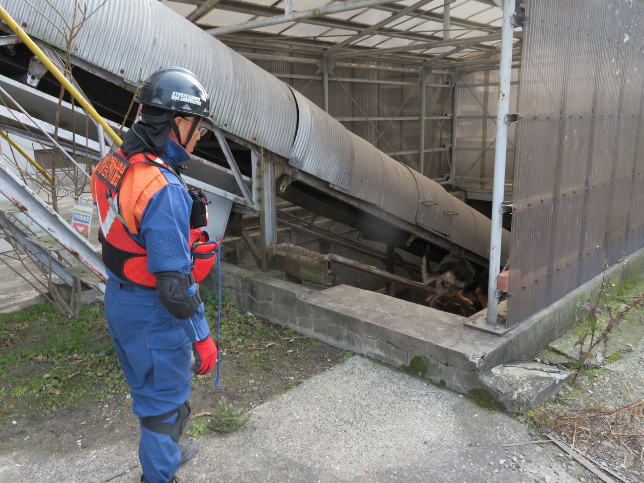 2月9日、八代市の旧清掃センターで救助犬の合同訓練が行われました。