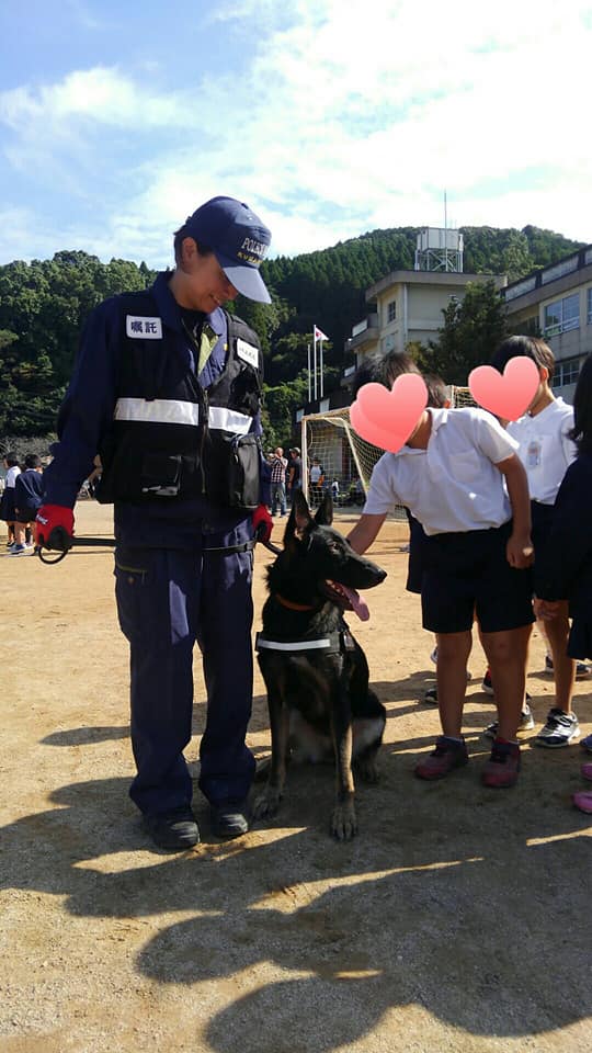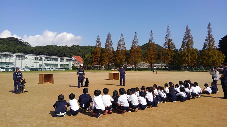 今年も水俣第一小学校で、警察犬のお仕事紹介に参加しました。