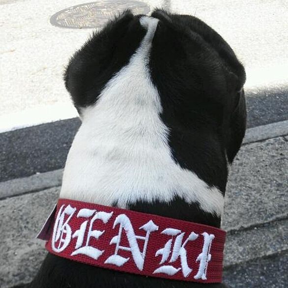 こちらは、名前入りの新品の首輪をつけてご機嫌な元気君