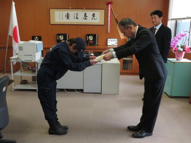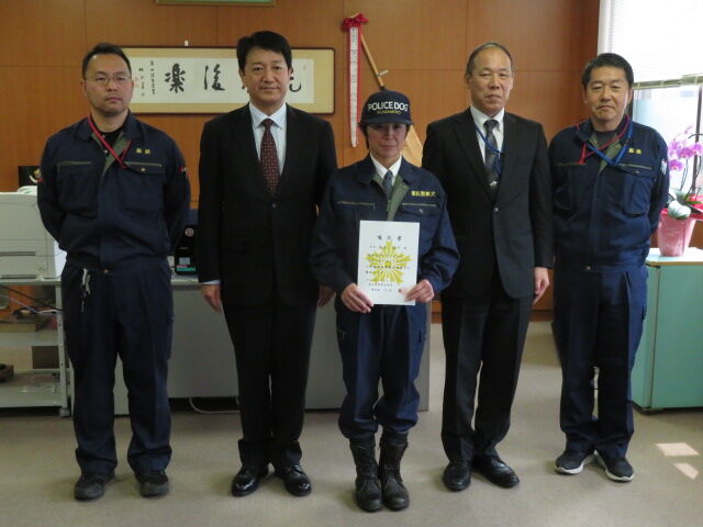 本日は、水俣警察署で熊本県嘱託警察犬の嘱託書交付式