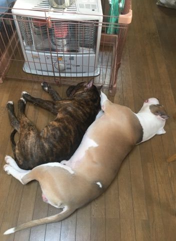 ストーブの前を占領中の様子