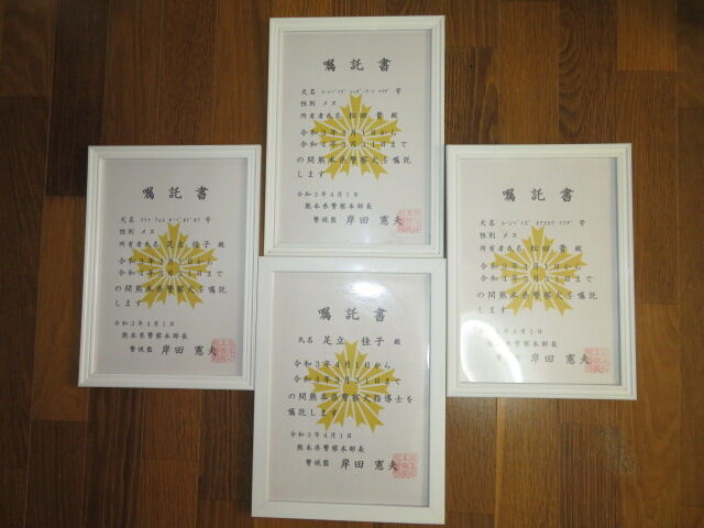 令和3年熊本県嘱託警察犬嘱託所交付式